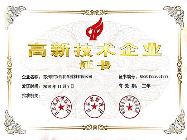 興邦擁有經(jīng)驗豐富的高水平科研技術(shù)團(tuán)隊,完整的科研管理體系,及完善的科研測試硬件設(shè)備。良好的軟硬件條件和持續(xù)的科研投入帶來累累碩果,興邦產(chǎn)品和為客戶提供的配方開發(fā)支持獲得客戶一致好評,累計獲得授權(quán)的發(fā)明專利超13件、實用新型超4件,累計參與國家、行業(yè)及團(tuán)體標(biāo)準(zhǔn)超20項。與此同時,興邦自2016年被首次認(rèn)定為高新技術(shù)企業(yè)以來,已經(jīng)連續(xù)三次順利通過高企審核。公司技術(shù)研發(fā)中心被認(rèn)定為“蘇州市綠色節(jié)能建筑材料工程技術(shù)研究中心”、“蘇州市企業(yè)技術(shù)中心”、“江蘇省無機(jī)膠凝材料外加劑工程技術(shù)研究中心”等等。